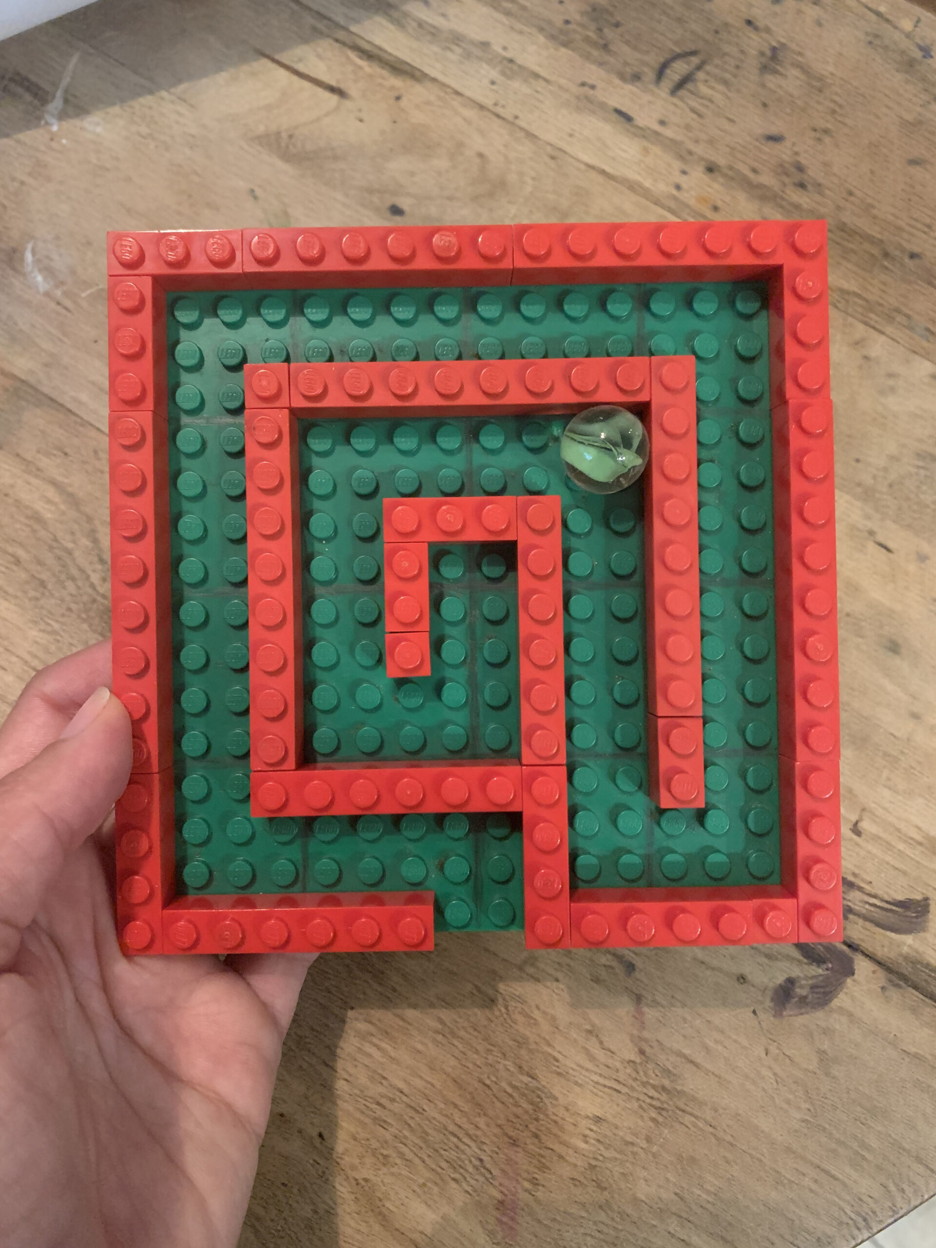 We built these small labyrinths out of LEGO to give a slightly different labyrinth experience. With these, you don’t walk the path, but rather trace it with your finger (which is honestly kind of a wild sensory experience because of the bumps on the bricks – I prefer tracing smooth labyrinths made of clay or wood or paper) or roll a marble through it.